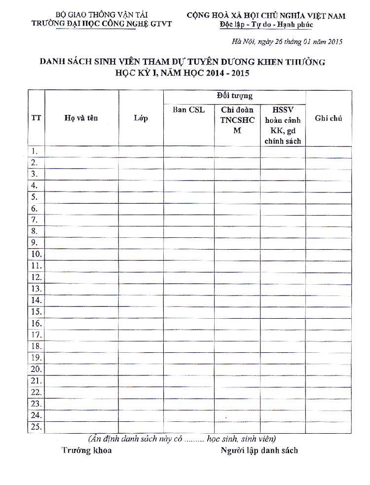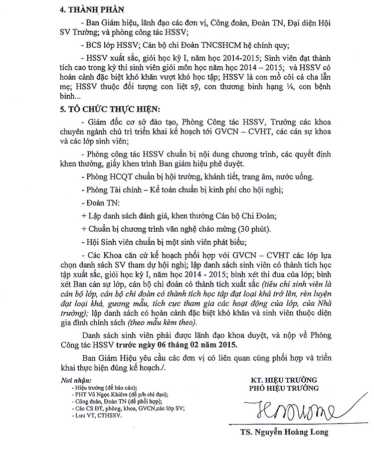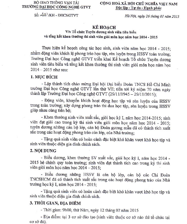 Kế hoạch Tổ chức tuyên dương sinh viên tiêu biểu và tổng kết khen thưởng thi sinh viên giỏi môn học năm học 2014-2015 29/01/2015 00:01