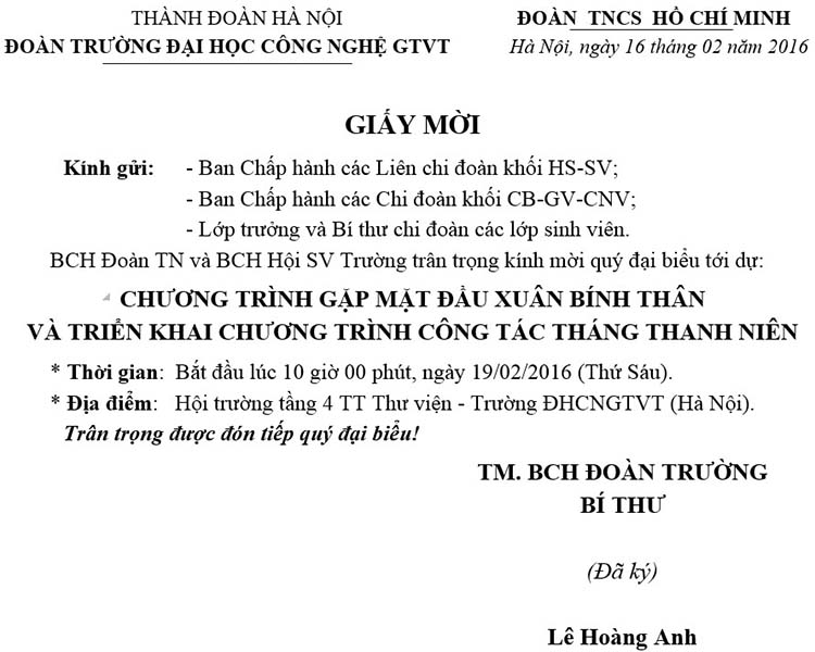 Mời gặp mặt đầu xuân Bính Thân và triển khai chương trình công tác Tháng thanh niên 2016 16/02/2016 16:02