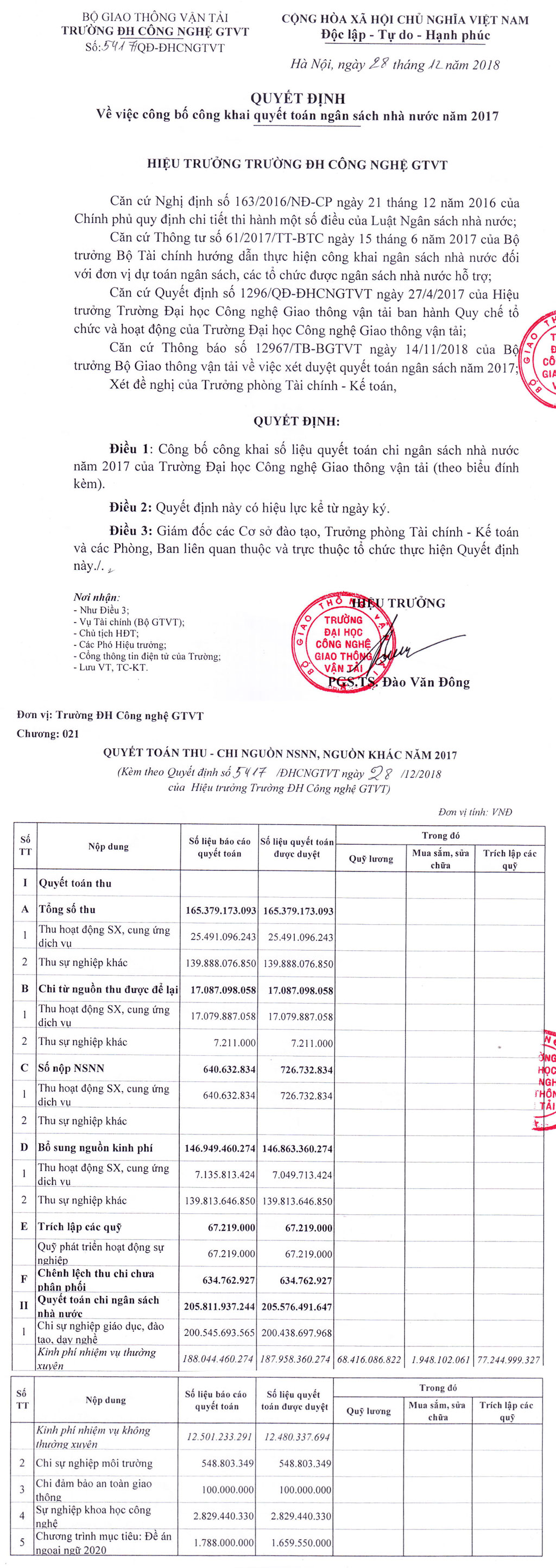 Quyết định công bố công khai quyết toán ngân sách nhà nước năm 2017