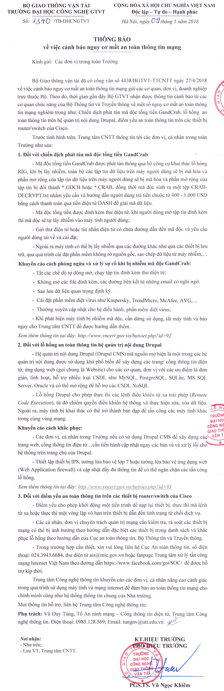 Thông báo cảnh báo nguy cơ mất an toàn thông tin mạng