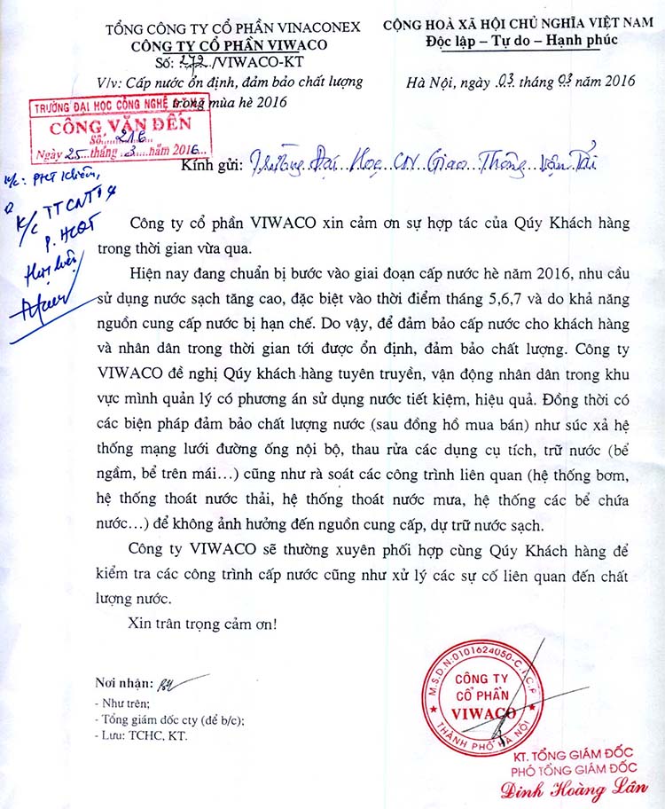 Thông báo Cấp nước ổn định, đảm bảo chất lượng trong mùa hè 2016