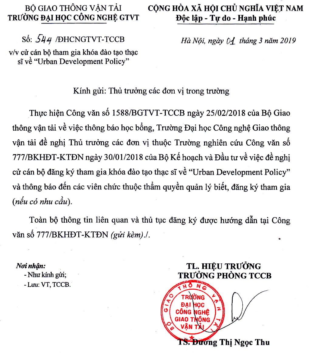 Thông báo cử cán bộ tham gia khóa đào tạo thạc sĩ Urban Development Policy 01/03/2019 17:03 File đính kèm 25.02.2019-1588_1.PDF