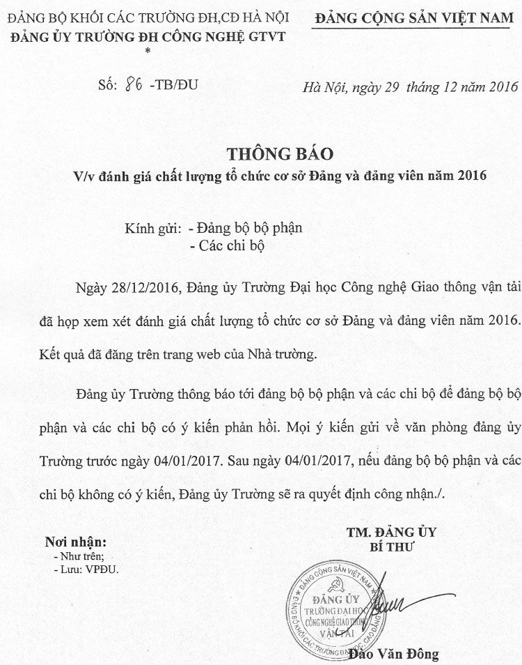 Thông báo Đánh giá chất lượng tổ chức cơ sở Đảng và đảng viên năm 2016 29/12/2016 18:12 File đính kèm Danh-gia-xep-loai-Dang-vien-2016.pdf