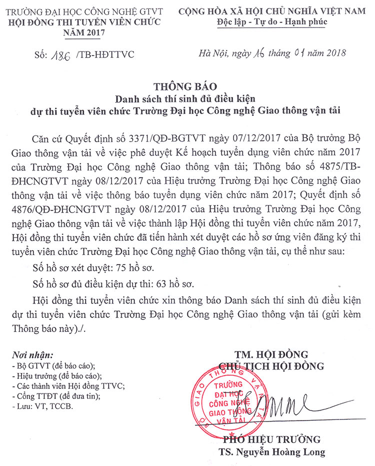 Thông báo Danh sách thí sinh đủ điều kiện dự thi tuyển viên chức Trường Đại học Công nghệ GTVT 17/01/2018 14:01 File đính kèm Danh-sach-thi-sinh-du-dieu-kien-du-thi-tuyen-vien-chuc.pdf