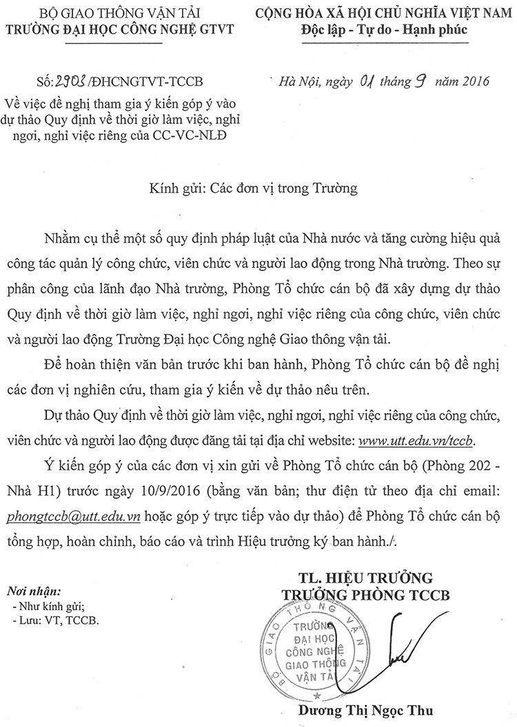 Thông báo đề nghị tham gia ý kiến góp ý vào dự thảo Quy định về thời giờ làm việc, nghỉ ngơi, nghỉ việc riêng của CC-VC-NLĐ 05/09/2016 10:09 File đính kèm Quy-dinh-lam-viec-nghi-ngoi-nghi-viec-rieng-du-thao.doc
