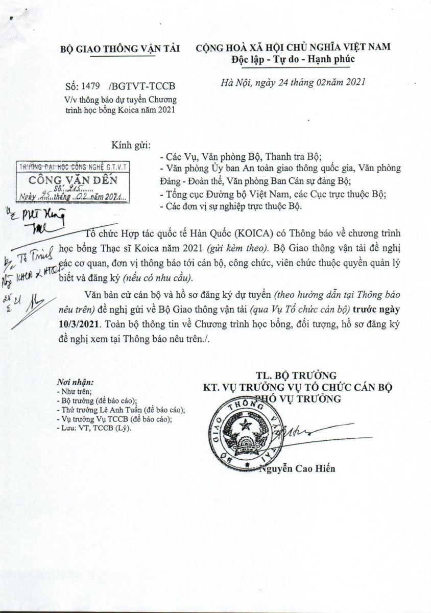 Thông báo dự tuyển Chương trình học bổng Koica 2021 08/03/2021 15:03 Chi tiết trong file đính kèm: File đính kèm HocBongKoica2021.pdf