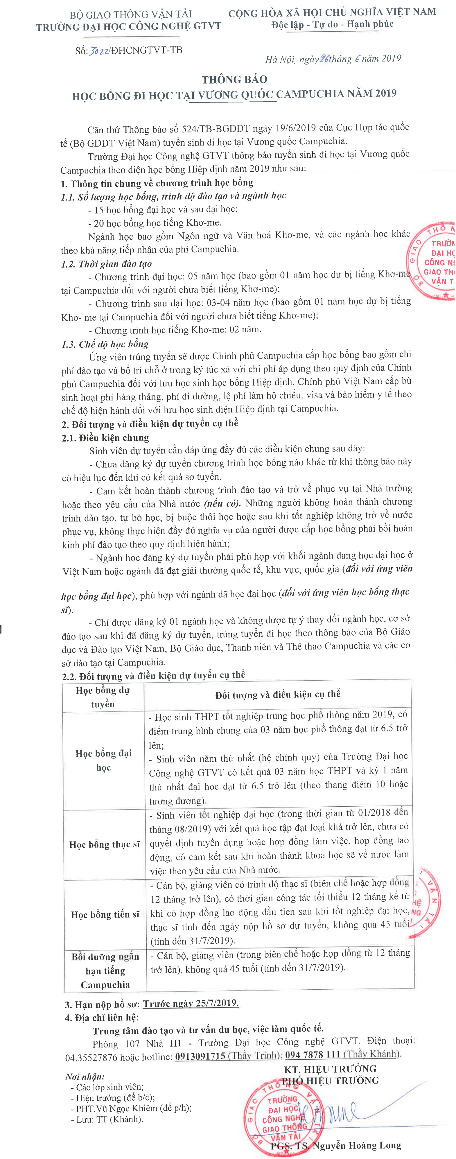 Thông báo Học bổng đi học tại Vương quốc Campuchia năm 2019