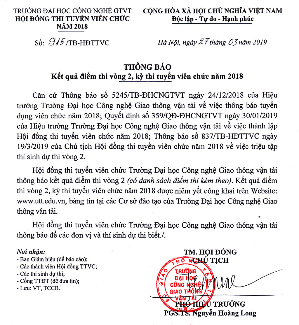 Thông báo Kết quả điểm thi vòng 2, kỳ thi tuyển viên chức năm 2018 27/03/2019 15:03 File đính kèm kq-vong-2-vien-chuc-nam-2018.pdf