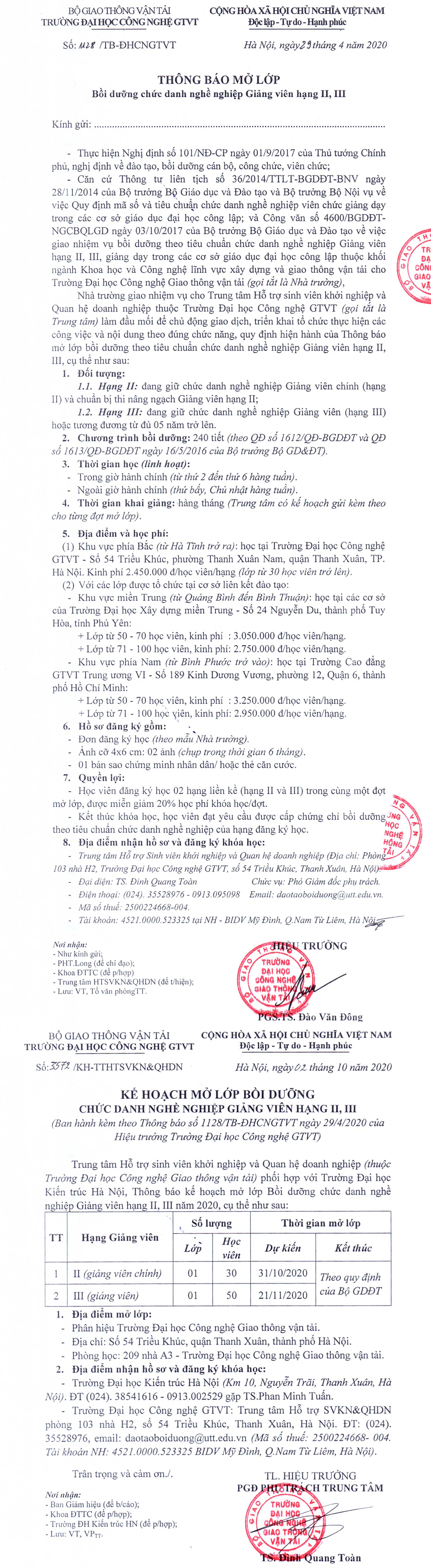 Thông báo mở lớp Bồi dưỡng chức danh nghề nghiệp Giảng viên hạng II, III năm 2020
