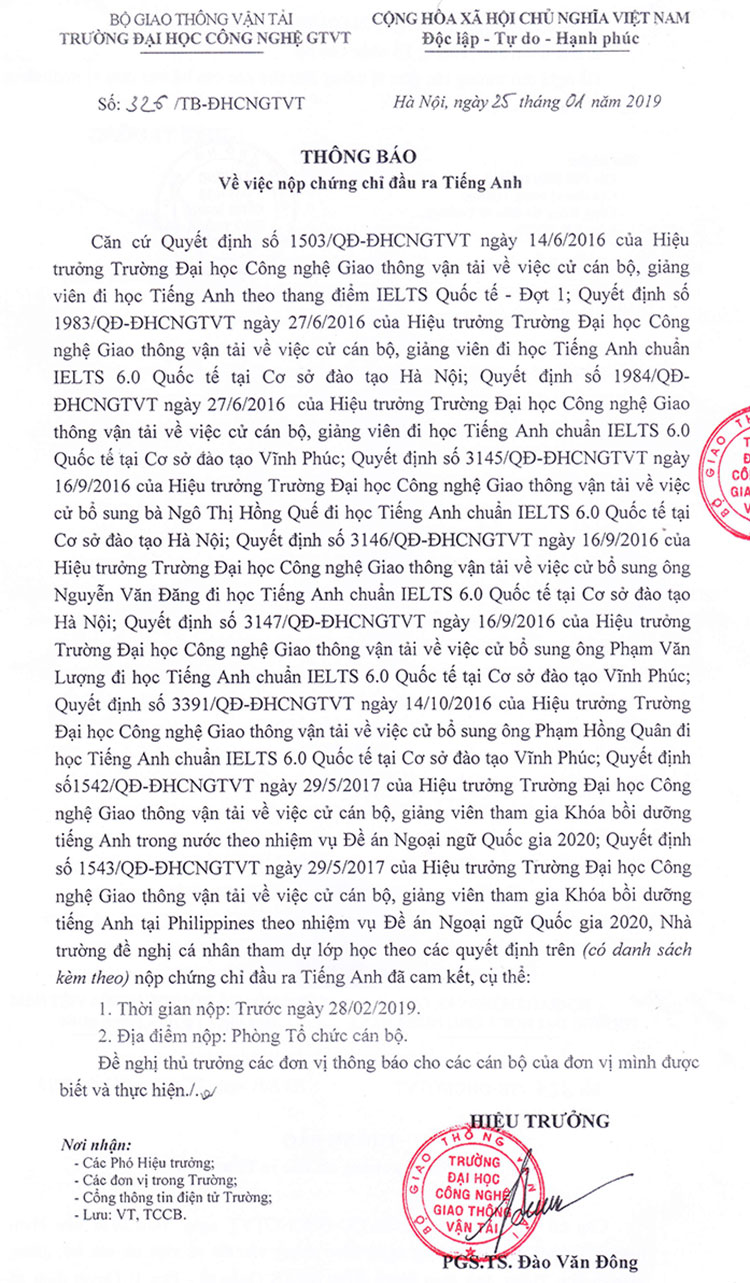 Thông báo nộp chứng chỉ đầu ra Tiếng Anh
