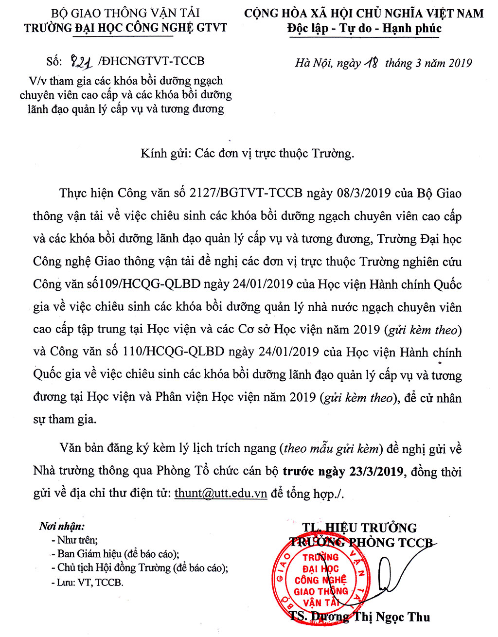 Thông báo tham gia các khóa bồi dưỡng ngạch chuyên viên cao cấp và các khóa bồi dưỡng lãnh đạo quản lý cấp vụ và tương đương 18/03/2019 16:03 File đính kèm 08.03.2019-2127_1.PDF