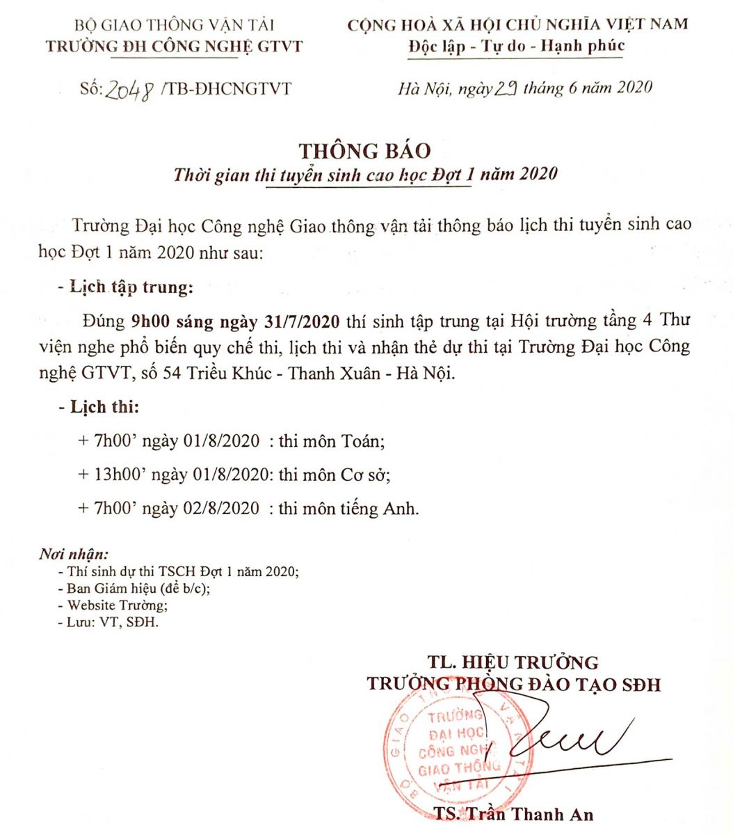 Thông báo Thời gian thi tuyển sinh cao học Đợt 1 năm 2020
