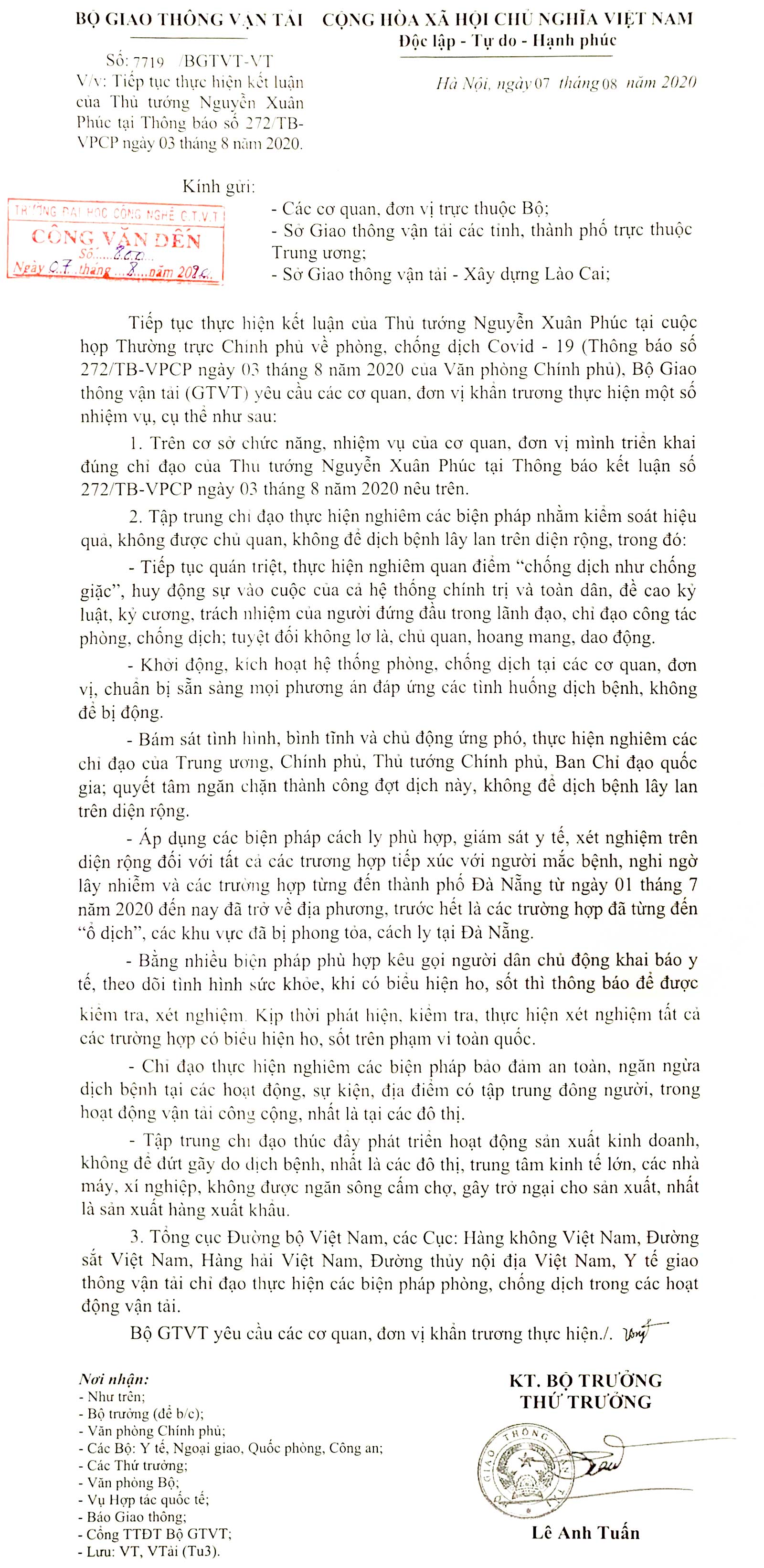 Thông báo Tiếp tục thực hiện kết luận của Thủ tướng Nguyễn Xuân Phúc tại Thông báo số 272/TB-VPCP ngày 03 tháng 8 năm 2020 12/08/2020 01:08 File đính kèm 272.signed.pdf 7719.pdf Tin liên quan Thông báo về việc cập nhật thông tin Căn cước công dân cho người phụ thuộc 30/10/2025 Kế hoạch tổ chức Toạ đàm khoa học “Vai trò của Trí tuệ nhân tạo và công nghệ mới trong nâng cao hiệu quả nghiên cứu lĩnh vực tài chính kế toán” 24/10/2025 Thông báo về việc cử cán bộ tham gia khóa bồi dưỡng tại Học viện Ngoại giao 20/10/2025 Về việc lấy ý kiến góp ý vào dự thảo Quyết định ban hành Quy định về công tác thi đua, khen thưởng của Trường Đại học Công nghệ GTVT 09/10/2025 Thông báo về việc thống kê khối lượng hoạt động phục vụ cộng đồng của giảng viên năm học 2024-2025 02/10/2025 Kê khai khối lượng hoạt động khoa học và công nghệ phục vụ thanh toán khối lượng thừa giờ năm học 2024-2025 01/10/2025