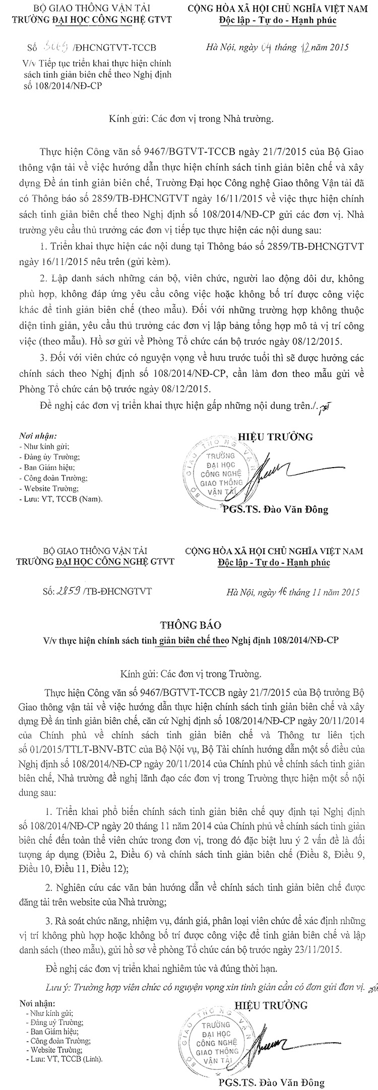 Thông báo Tiếp tục triển khai thực hiện chính sách tinh giản biên chế theo Nghị định số 108/2014/NĐ-CP 04/12/2015 00:12 Nội dung chi tiết của văn bản đề nghị xem tại tệp đính kèm./. File đính kèm mau-danh-sach-tinh-gian-bien-che.xls bang-mo-ta-vi-tri-viec-lam.doc mau-don-xin-nghi-huu-truoc-tuoi.doc 01-TTLT-BNV_signed.pdf Nghi_Dinh_108_2014_ND-CP.pdf tiep-tuc-trien-khai-tinh-gian-bien-che.pdf Tin liên quan Thông báo về việc đăng ký tham dự Hội thảo “Cùng nhau vươn lên: Kỹ năng lãnh đạo cho tương lai của giáo dục đại học tại Việt Nam và Đông Nam Á” 12/11/2025 Thông báo về việc cập nhật thông tin Căn cước công dân cho người phụ thuộc 30/10/2025 Kế hoạch tổ chức Toạ đàm khoa học “Vai trò của Trí tuệ nhân tạo và công nghệ mới trong nâng cao hiệu quả nghiên cứu lĩnh vực tài chính kế toán” 24/10/2025 Thông báo về việc cử cán bộ tham gia khóa bồi dưỡng tại Học viện Ngoại giao 20/10/2025 Về việc lấy ý kiến góp ý vào dự thảo Quyết định ban hành Quy định về công tác thi đua, khen thưởng của Trường Đại học Công nghệ GTVT 09/10/2025 Thông báo về việc thống kê khối lượng hoạt động phục vụ cộng đồng của giảng viên năm học 2024-2025 02/10/2025 Tin nổi bật Bộ Xây dựng tổ chức Hội nghị công tác đào tạo khối các trường đại học thuộc Bộ 06/11/2025 17:11 Sinh viên chuyên ngành Trí tuệ nhân tạo & Giao thông thông minh UTT: Kiến tạo tương lai cùng doanh nghiệp 04/11/2025 08:11 UTT Awards 2025: Khi người học nói lời tri ân những người Tận tâm- Tận hiến vì UTT 29/10/2025 14:10 UTT ra mắt Mạng lưới trung tâm đào tạo xuất sắc và tài năng trong lĩnh vực Công nghệ giao thông và Hạ tầng tiên... 10/10/2025 13:10 Thông tin mới nhất Trường Đại học Công nghệ GTVT tăng cường hợp tác quốc tế với Trường Đại học Công nghệ Thông tin và Quản lý... 13/11/2025 10:11 Thông báo về việc đăng ký tham dự Hội thảo “Cùng nhau vươn lên: Kỹ năng lãnh đạo cho tương lai của giáo dục đại... 12/11/2025 15:11 Tọa đàm khoa học: Vai trò của trí tuệ nhân tạo trong nghiên cứu và giảng dạy lĩnh vực tài chính - kế toán 11/11/2025 10:11 Bộ Xây dựng tổ chức Hội nghị công tác đào tạo khối các trường đại học thuộc Bộ 06/11/2025 17:11 Đại hội Hội Cựu chiến binh Trường Đại học Công nghệ GTVT nhiệm kỳ 2025-2030 04/11/2025 15:11
