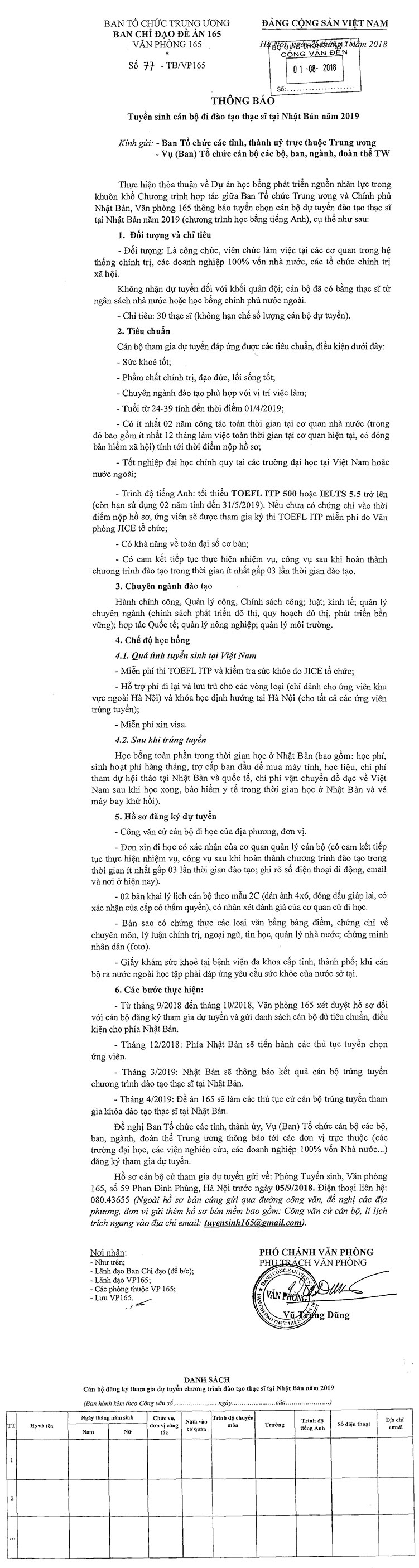 Thông báo Tuyển sinh cán bộ đi đào tạo thạc sĩ tại Nhật Bản năm 2019 04/09/2018 14:09 File đính kèm 29.08.2018-9654_1.PDF