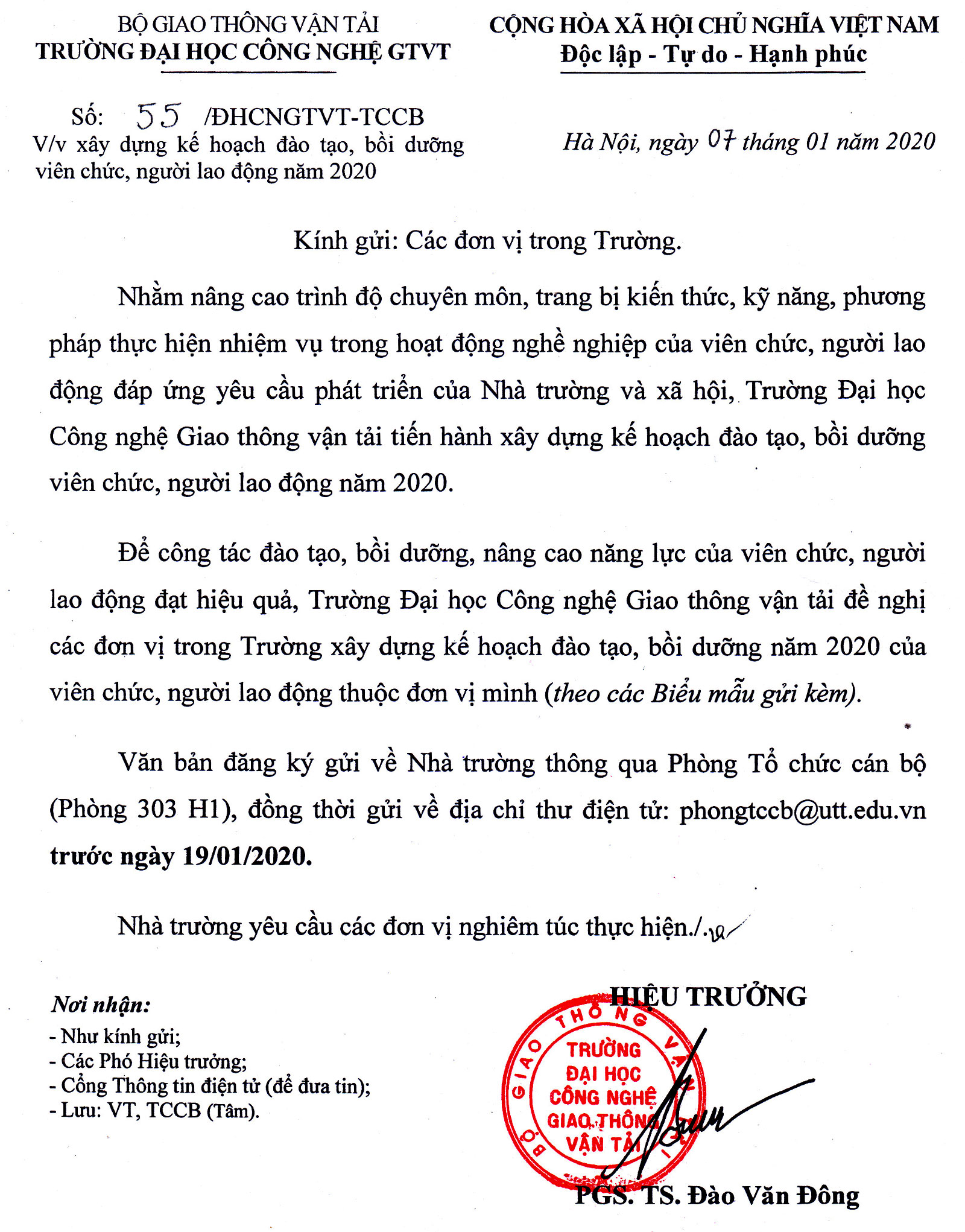 Thông báo xây dựng kế hoạch đào tạo, bồi dưỡng viên chức, người lao động năm 2020 08/01/2020 04:01 File đính kèm Bieu-mau.KHDT-BD-nam-2020.xls