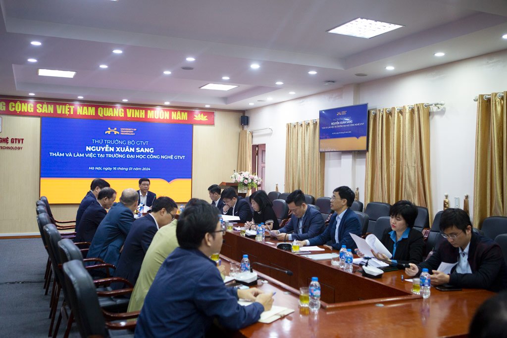 Sáng 16/01, Thứ trưởng Bộ GTVT Nguyễn Xuân Sang và đoàn công tác gồm các đồng chí lãnh đạo đại diện các Vụ Tài chính, Vụ Kế hoạch - Đầu tư, Vụ Tổ chức cán bộ, Vụ KHCN và MT thuộc Bộ Giao thông vận tải đã đến thăm và làm việc tại Trường Đại học Công nghệ GTVT.
