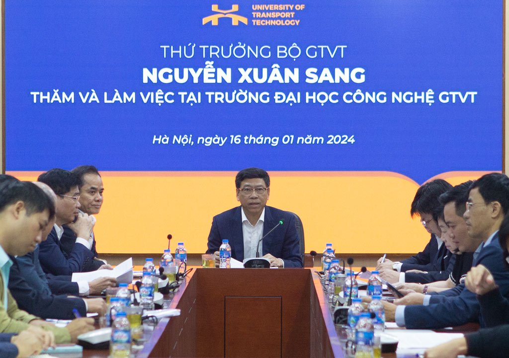 Tại buổi làm việc, Thứ trưởng Nguyễn Xuân Sang đã nghe báo cáo của các đồng chí lãnh đạo Vụ Tài chính; Vụ Kế hoạch Đầu tư; Vụ Tổ chức cán bộ; Vụ Khoa học công nghệ và Môi trường về công tác giải quyết các công việc liên quan đến Trường và một số vấn đề tham mưu trong chiến lược phát triển ngắn hạn, dài hạn của Trường Đại học Công nghệ GTVT.