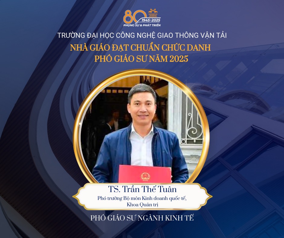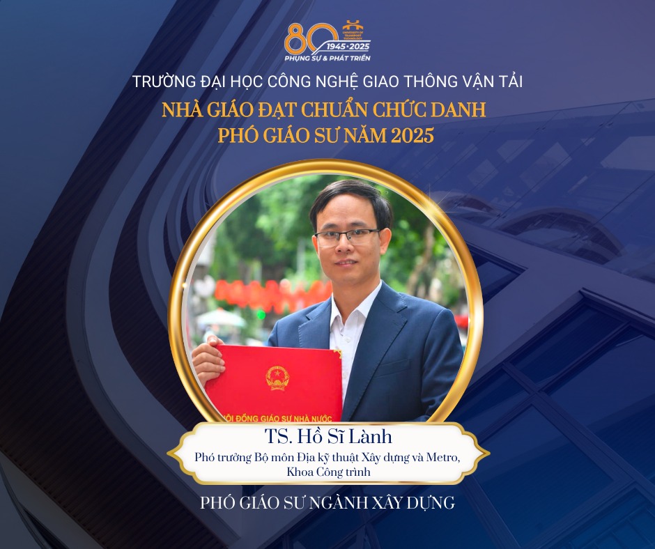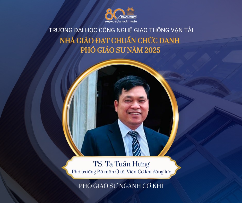 Ngày 19/11/2025, Chủ tịch Hội đồng Giáo sư Nhà nước đã ký Quyết định công nhận đạt tiêu chuẩn chức danh giáo sư, phó giáo sư năm 2025. Trong đợt xét này, Trường Đại học Công nghệ GTVT (UTT) vinh dự có 06 giảng viên được công nhận đạt chuẩn Phó Giáo sư ở các ngành Cơ khí, Giao thông vận tải, Kinh tế và Xây dựng. Đây là dấu mốc quan trọng khẳng định năng lực chuyên môn và thành tựu nghiên cứu của đội ngũ giảng viên Trường Đại học Công nghệ GTVT.