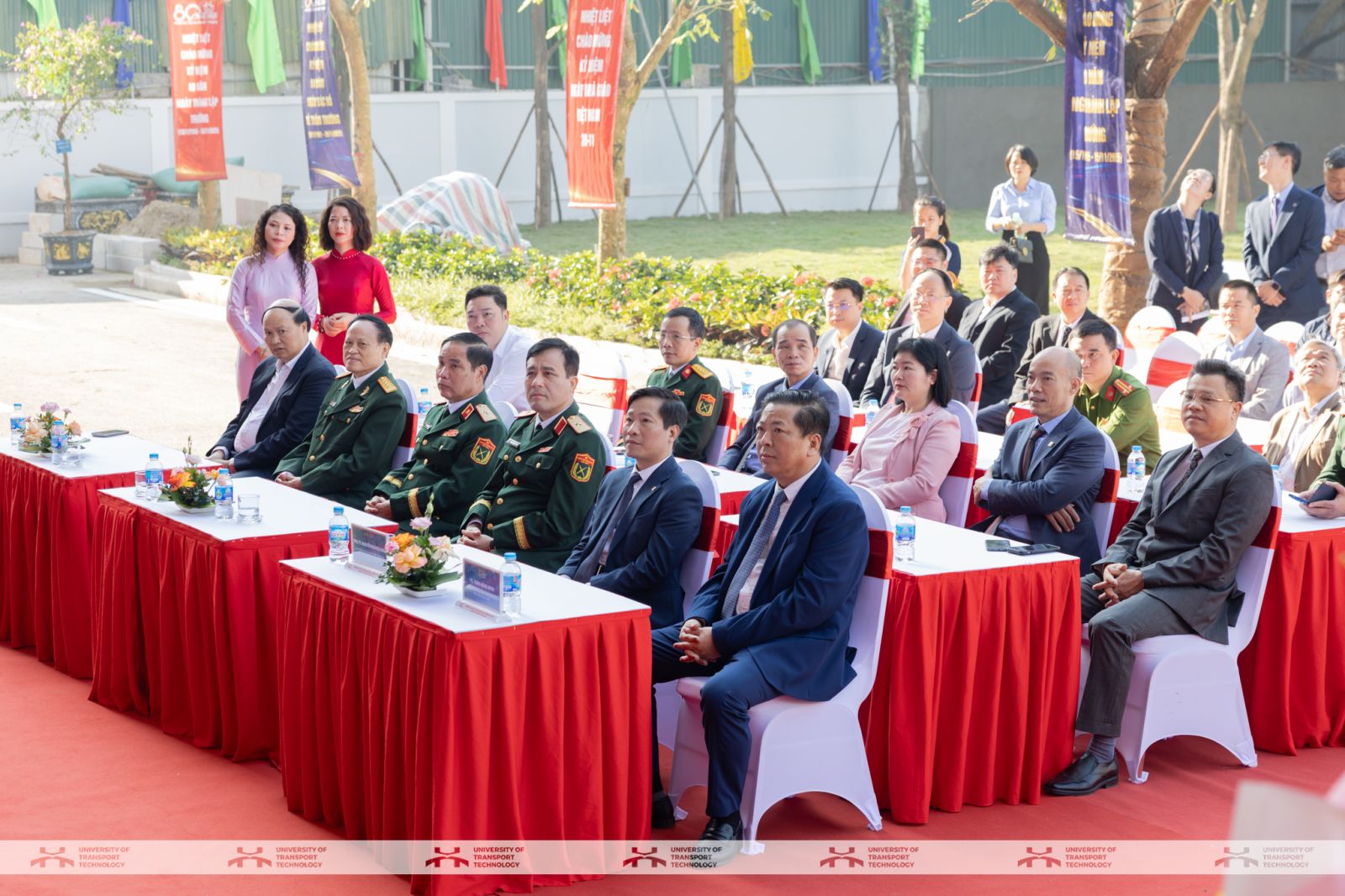 Trong diễn văn kỷ niệm, PGS.TS Nguyễn Hoàng Long - Hiệu trưởng Nhà trường đã ôn lại hành trình 80 năm xây dựng và phát triển của Trường, kể từ ngày khai giảng đầu tiên 15/11/1945 của Trường Cao đẳng Công chính, giữa những thời khắc gian khó của nước Việt Nam Dân chủ Cộng hòa non trẻ. Trong muôn vàn khó khăn của chiến tranh và thử thách, thầy và trò Nhà trường vẫn vừa giảng dạy, học tập, vừa tham gia đảm bảo giao thông, phục vụ chiến đấu trên các tuyến đường huyết mạch. Trải qua nhiều lần tách - nhập - đổi tên, từ Cao đẳng Công chính, Kỹ thuật, Trung cấp Giao thông đến Cao đẳng GTVT và nay là Trường Đại học Công nghệ GTVT, UTT luôn hoàn thành xuất sắc nhiệm vụ được giao, đào tạo hàng chục vạn kỹ sư, cử nhân, thạc sĩ, tiến sĩ đóng góp cho ngành giao thông và đất nước. Nhiều cựu sinh viên đã trở thành lãnh đạo các bộ, ngành, chuyên gia đầu ngành, cán bộ chủ chốt tại các tập đoàn, doanh nghiệp lớn.