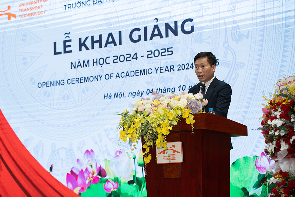 Phát biểu tại Lễ khai giảng, PGS.TS Nguyễn Hoàng Long gửi lời chúc mừng đến các tân sinh viên đã vượt qua hành trình học tập vất vả, một kì thi tốt nghiệp đầy cạnh tranh để chính thức trở thành thành viên của Trường Đại học Công nghệ GTVT. “Các em có quyền tự hào về những nỗ lực của bản thân, tự hào là sinh viên của ngôi trường có bề dày truyền thống lịch sử và đào tạo chất lượng cao với nhiều hoạt động sinh viên sôi nổi. Các em hãy đặt ra cho mình những mục tiêu ngay từ bây giờ để xứng đáng với công lao nuôi dưỡng, dạy dỗ, yêu thương của ông bà, cha mẹ, gia đình và thầy cô”.