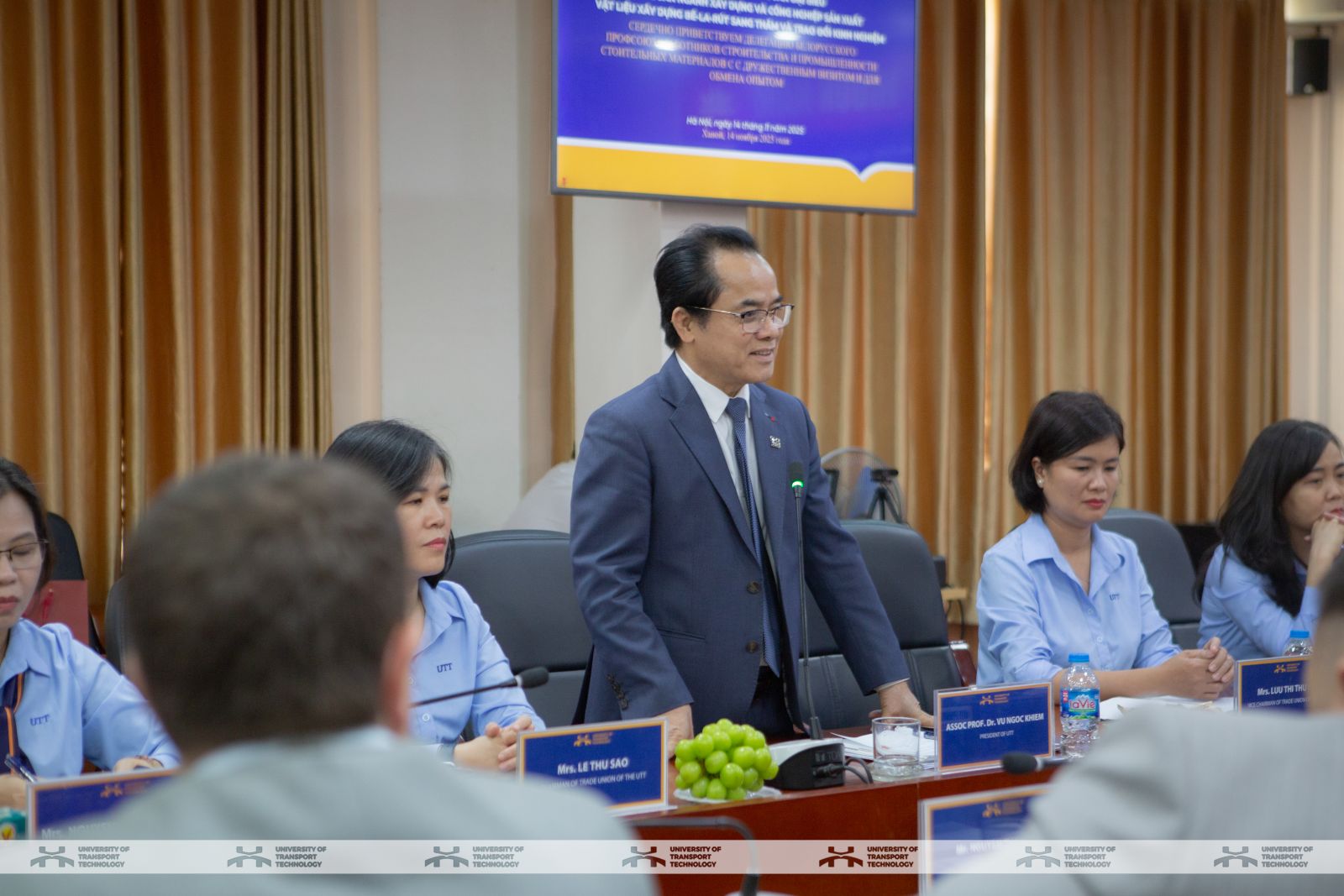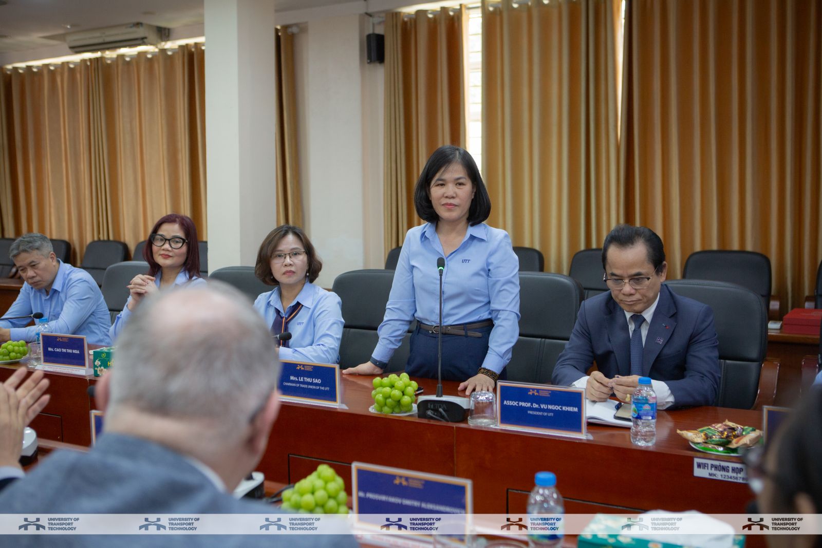 Buổi làm việc chính thức diễn ra tại phòng họp T3 – H3. Đại diện Công đoàn Trường, Công đoàn Xây dựng Việt Nam và Đoàn Belarus đã cùng nhau chia sẻ thông tin về tổ chức, mô hình hoạt động công đoàn, chế độ phúc lợi, công tác chăm lo đời sống cho đoàn viên, hoạt động phong trào và các phương thức phối hợp giữa công đoàn với cơ sở giáo dục – doanh nghiệp trong bối cảnh mới. Đại diện UTT cũng giới thiệu khái quát về lịch sử hình thành, định hướng phát triển, các lĩnh vực đào tạo – nghiên cứu mũi nhọn, đặc biệt là môi trường học tập và cơ sở vật chất đang từng bước hiện đại hóa, đáp ứng yêu cầu hội nhập.