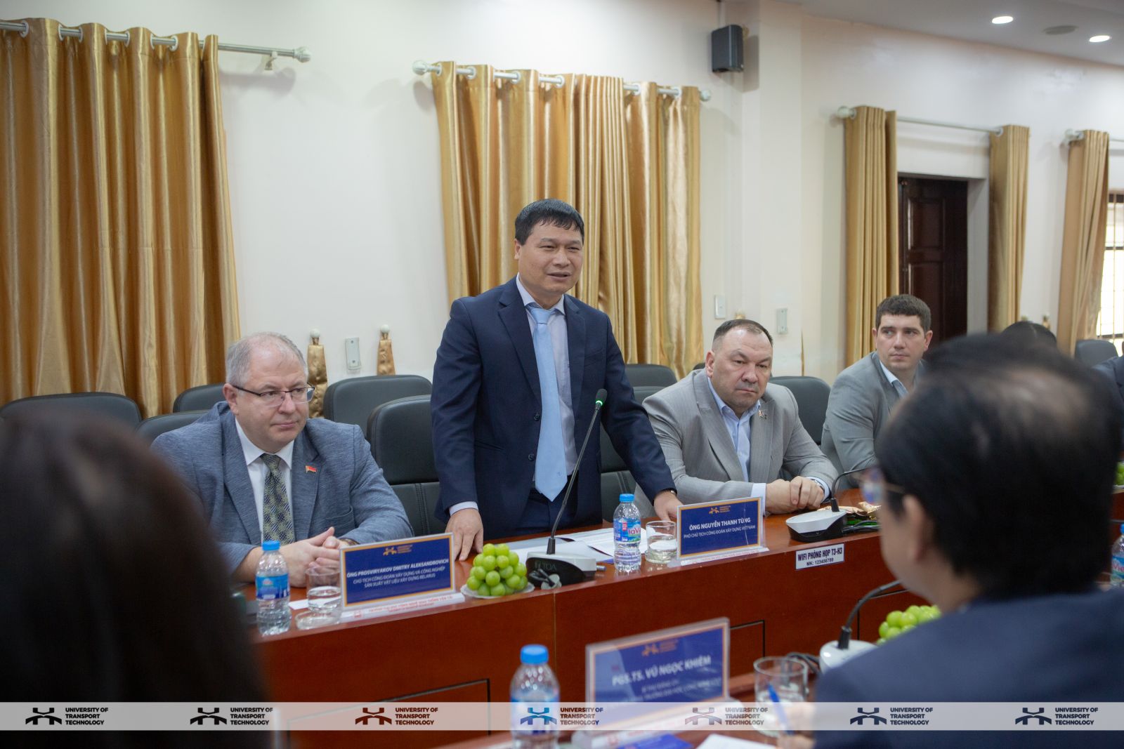 Trong tinh thần hữu nghị và hợp tác, các bên đã trao tặng quà lưu niệm, thể hiện tình cảm trân trọng và mong muốn mở rộng thêm các hoạt động giao lưu, trao đổi kinh nghiệm trong thời gian tới. Sau buổi làm việc, đoàn Belarus đã đến tham quan hệ thống cơ sở vật chất của Nhà trường, bao gồm các tòa nhà làm việc, phòng học, phòng thí nghiệm, không gian thực hành – hội trại và các khu vực chức năng khác. Đoàn đánh giá cao sự phát triển mạnh mẽ của UTT cũng như nỗ lực xây dựng môi trường giáo dục hiện đại, gắn kết chặt chẽ với nhu cầu đào tạo nhân lực cho ngành giao thông – xây dựng.