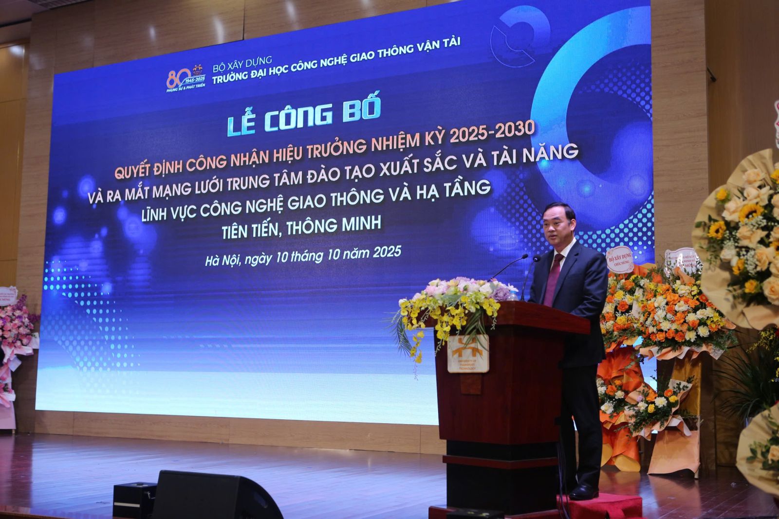 Ngày 10/10/2025, Trường Đại học Công nghệ GTVT (UTT) long trọng tổ chức Lễ ra mắt Mạng lưới trung tâm đào tạo xuất sắc và tài năng trong lĩnh vực Công nghệ giao thông và Hạ tầng tiên tiến, thông minh. Thứ trưởng Bộ Xây dựng Phạm Minh Hà dự và phát biểu chỉ đạo.