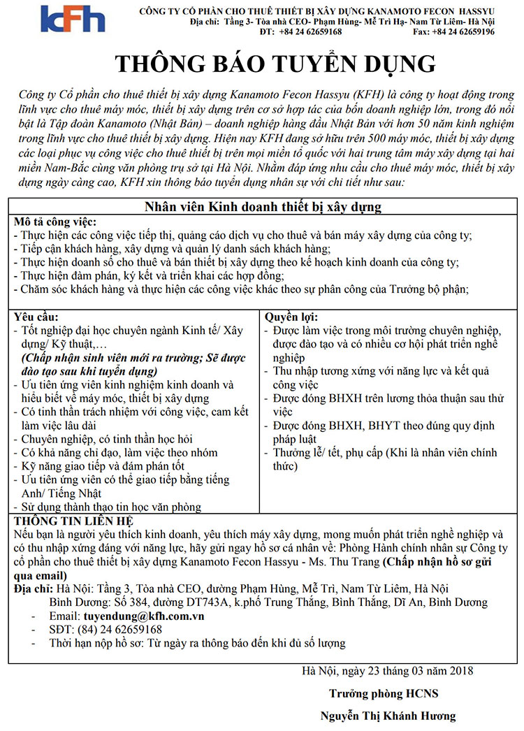 Công ty KFH-FECON tuyển nhân sự