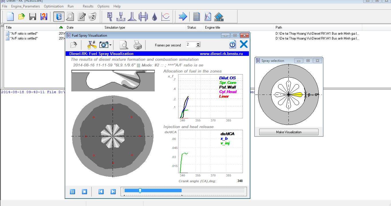Sử dụng phần mềm Diesel RK mô phỏng diễn biến chùm tia phun