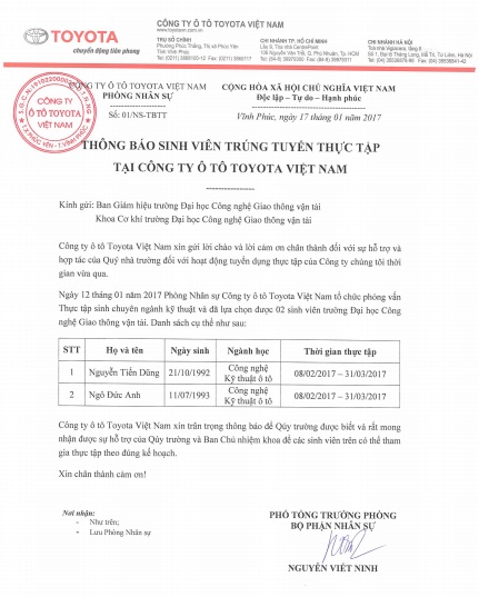 SV ô tô trúng tuyển thực tập tại Toyota Việt Nam