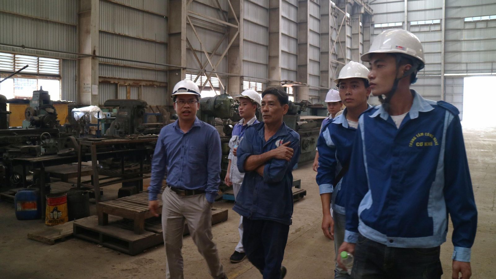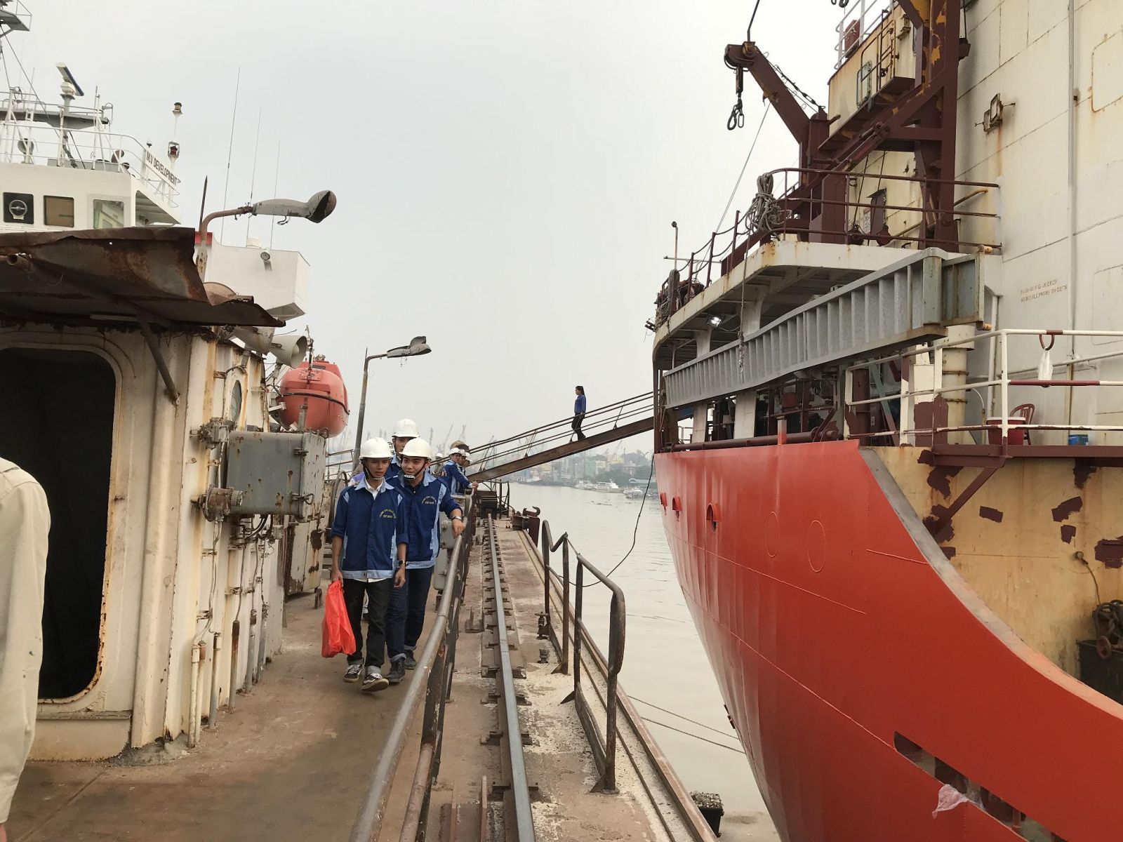 Sinh viên được giới thiệu và tham quan các con tàu đang được đóng mới, hệ thống nhà xưởng, kho bãi, cầu cảng, trang thiết bị sản xuất. Nhà xưởng phục vụ gia công lắp ráp phân tổng đoạn được trang bị các thiết bị chuyên dụng gia công, máy lốc tôn, máy ép thủy lực, máy uốn thép hình, máy cắt CNC, máy hàn tự động v.v…Hiện tại, Công ty cũng là nơi các sinh viên Khóa 64 Chuyên ngành CNKT Cơ khí Máy tàu thủy thực tập chuyên ngành và thực tập tốt nghiệp dưới sự hướng dẫn tận tình của các kỹ thuật viên của nhà máy.