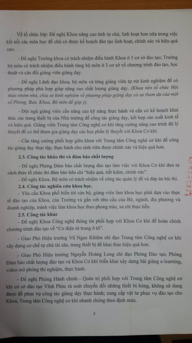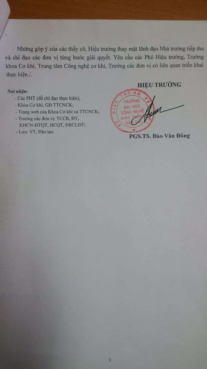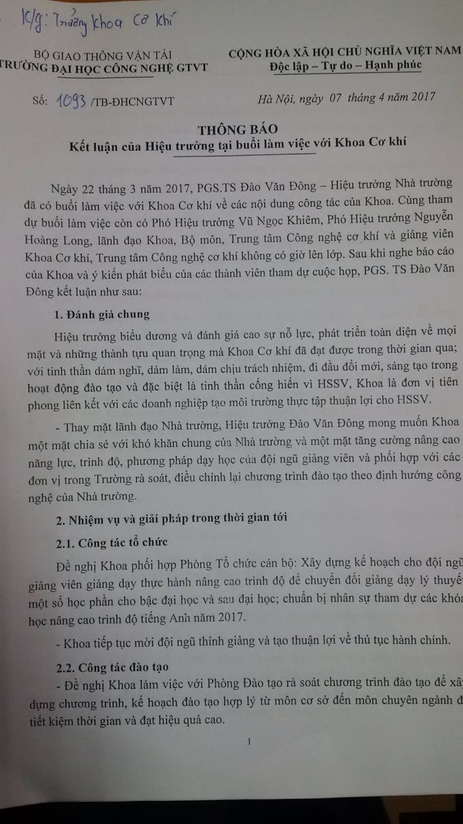 Thông báo kết luận của Hiệu trưởng với Khoa cơ khí