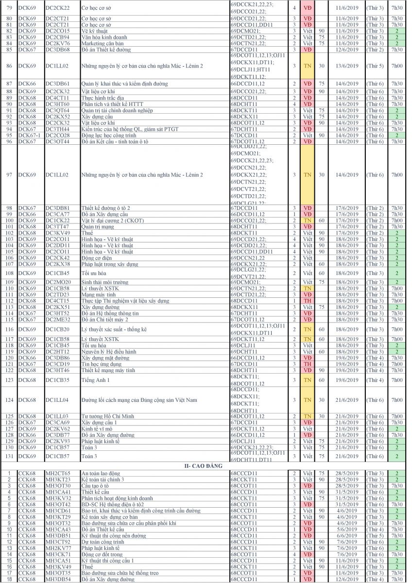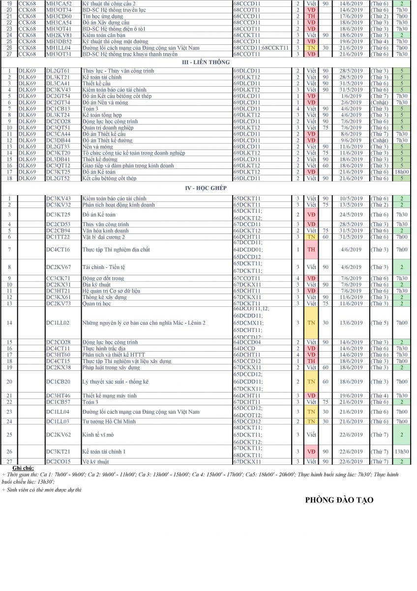 Lịch thi KTHP Kỳ 2_2024_2025 (Nấc 1)