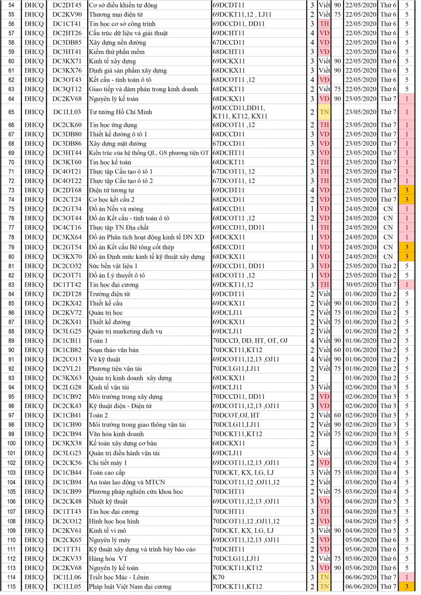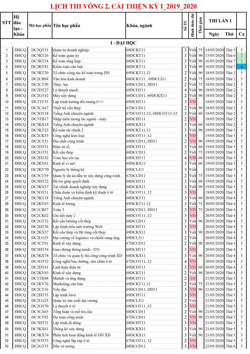 LỊCH THI VÒNG 2 + CẢI THIỆN, KỲ 1_2019_2020