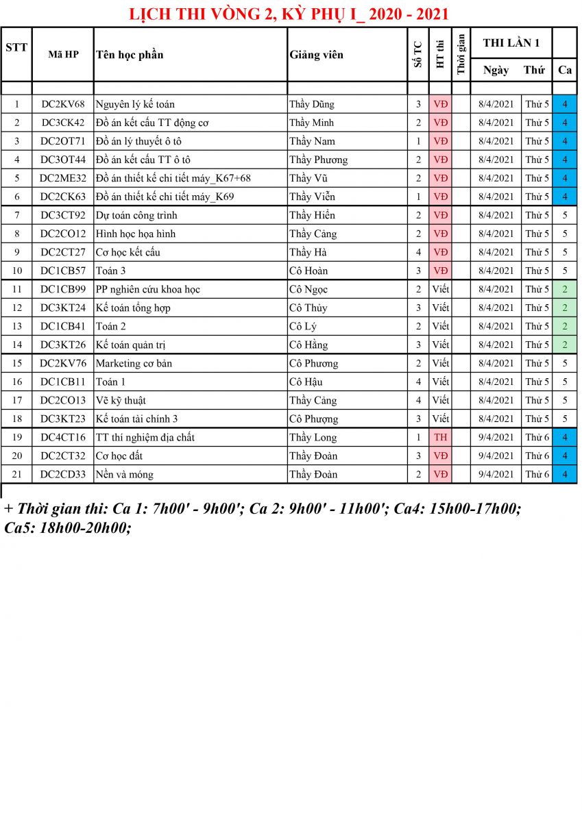 LỊCH THI VÒNG 2 _ KỲ PHỤ 1_2020_2021