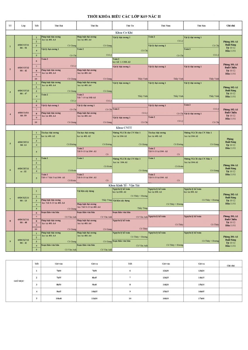 THỜI KHÓA BIỂU K69 KỲ 1 NĂM HỌC 2018 - 2019 NẤC 2
