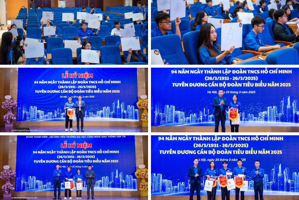 Nhằm khơi dậy tinh thần đoàn kết, sự nhiệt huyết và ý chí, khát vọng cống hiến của đội ngũ đoàn viên, sinh niên trong quá trình xây dựng và phát triển của Nhà trường; đồng thời ghi nhận những nỗ lực, đóng góp của đội ngũ cán bộ Đoàn các cấp cho công tác Đoàn và phong trào thanh niên Trường Đại học Công nghệ GTVT. Thực hiện chương trình công tác năm học 2024 – 2025; nhân dịp Kỷ niệm 94 năm ngày thành lập Đoàn TNCS Hồ Chí Minh (26/3/1931 - 26/3/2025), Đoàn TNCS Hồ Chí Minh Trường Đại học Công nghệ Giao thông vận tải đã tổ chức chuỗi các hoạt động chào mừng.