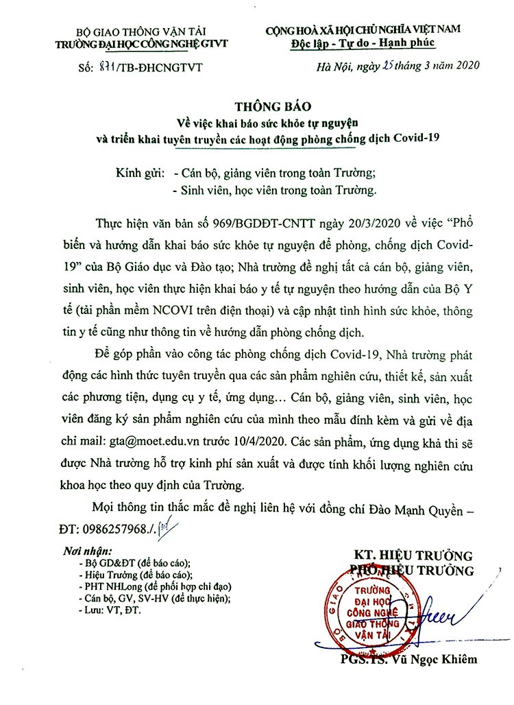 Thông báo về việc tăng cường các biện pháp phòng, chống dịch Covid-19 trong tình hình mới