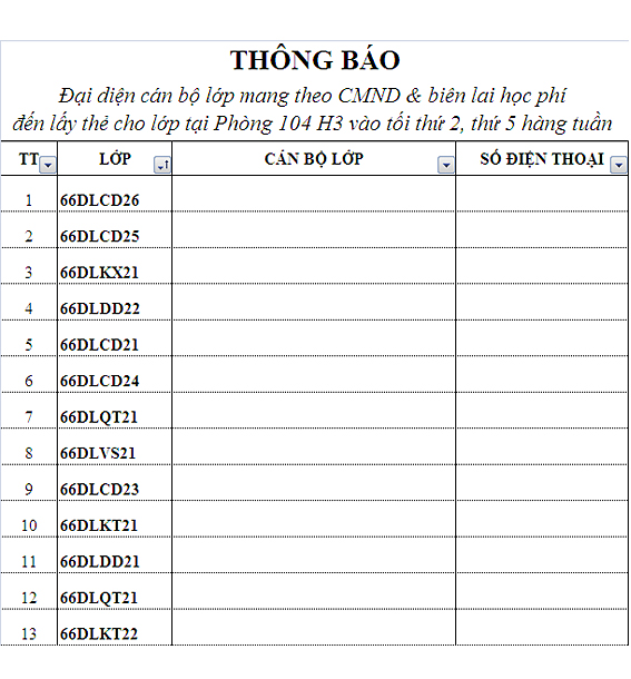 Bố sung thẻ HSSV K66 hệ liên thông đợt 3