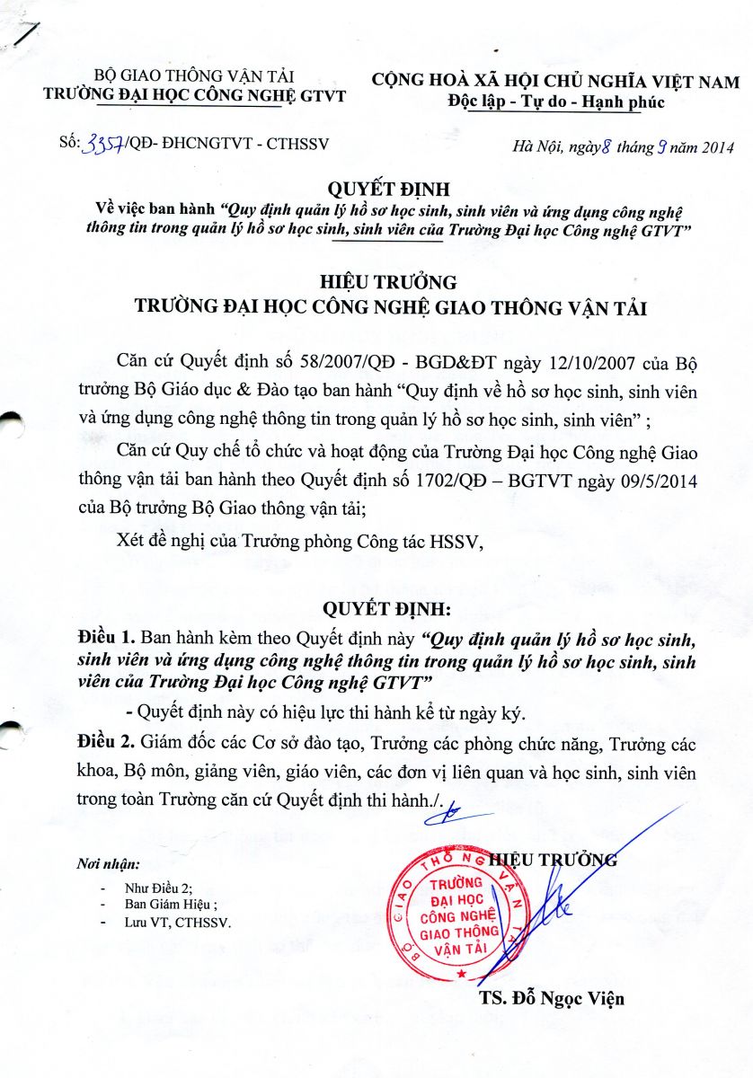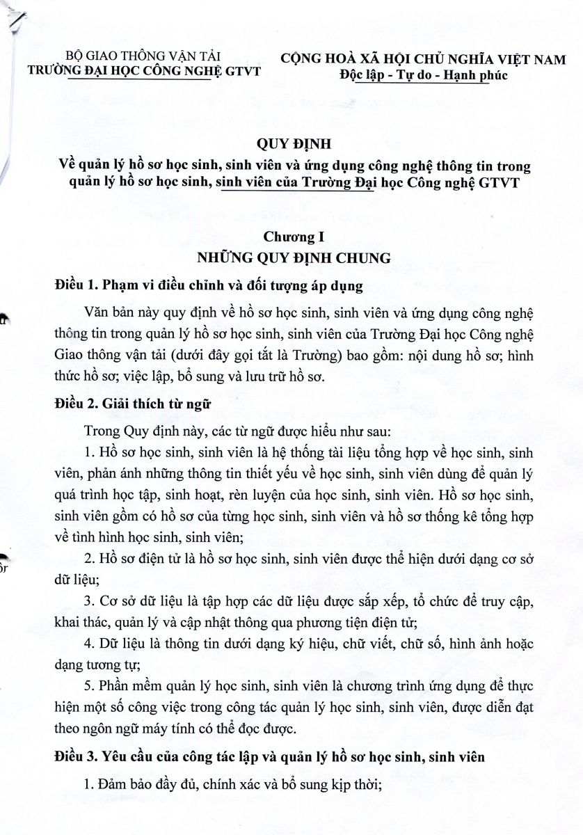 QUY CHẾ CÔNG TÁC SINH VIÊN TRƯỜNG ĐẠI HỌC CÔNG NGHỆ GIAO THÔNG VẬN TẢI
