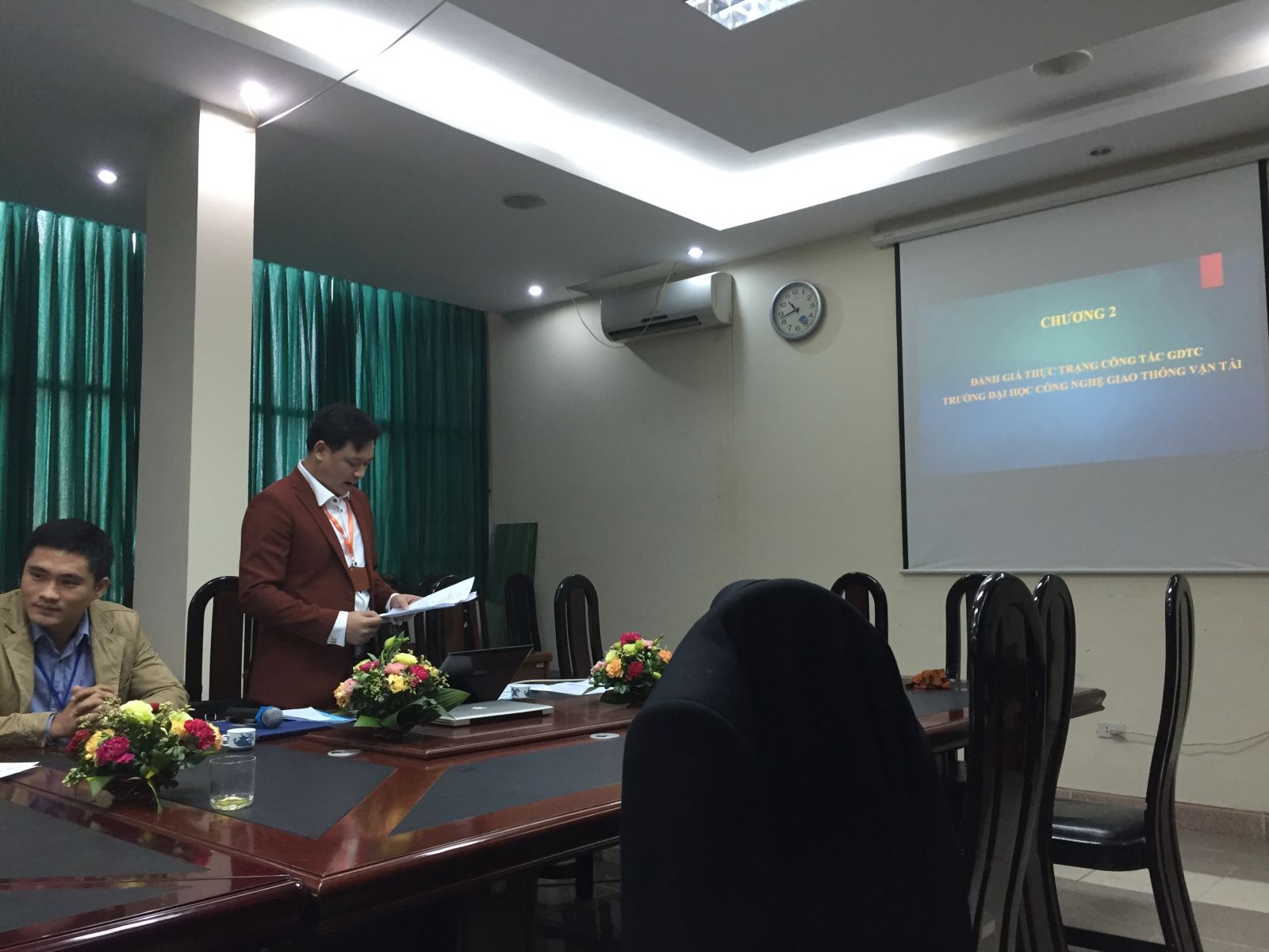 Thạc sỹ, Phó trưởng Bộ môn, phụ trách Bộ môn GDTC Nguyễn Thành Long bảo vệ đề tài: " Nghiên cứu và đề xuất một số giải pháp nhằm nâng cao chất lượng công tác Giáo dục thể chất Trường Đại học Công nghệ Giao thông Vận Tải"