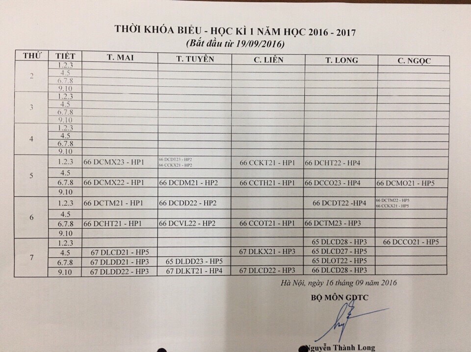 LỊCH HỌC - LỊCH THI (ĐỢT 2, KỲ 1 NĂM HỌC 2016 - 2017)
