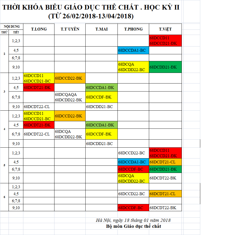 LỊCH HỌC MÔN GDTC KHOÁ 68 KỲ II NĂM HỌC 2017-2018 (ĐỢT 1)