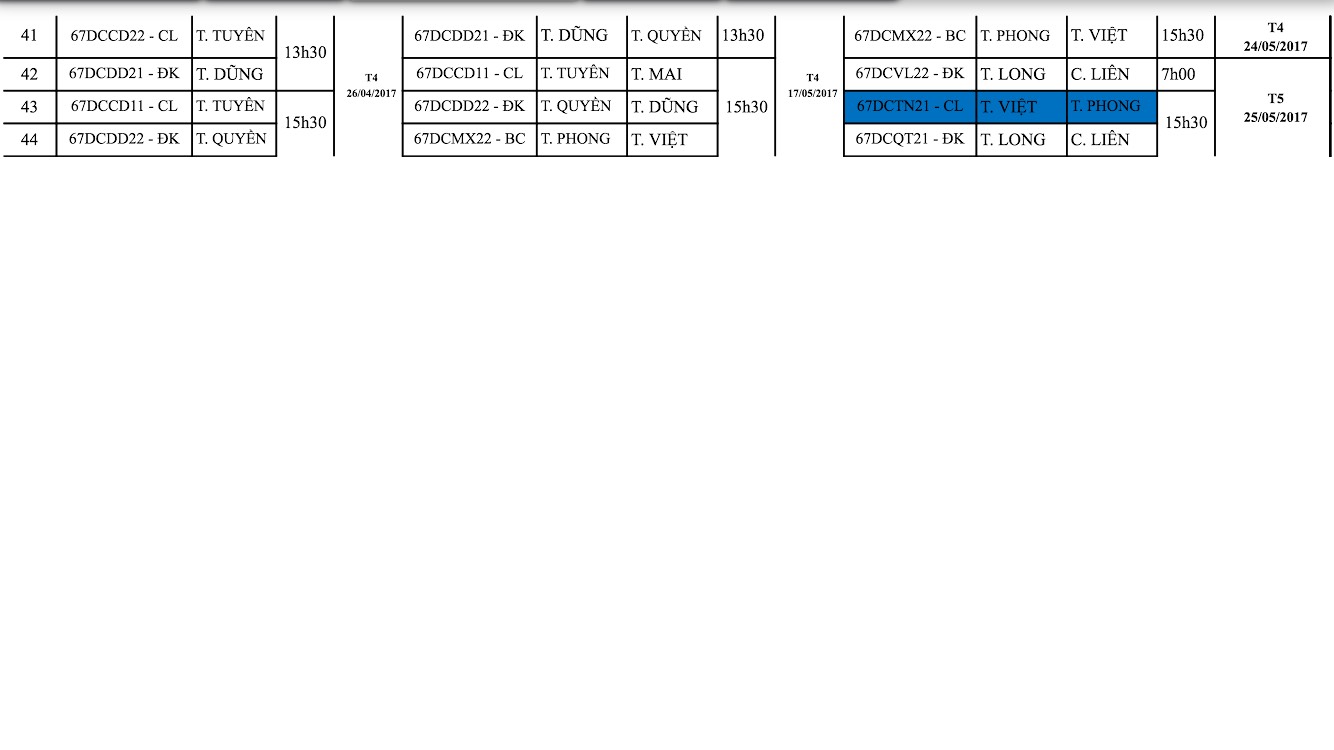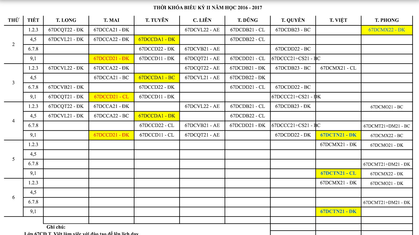 CÁC LỚP CÓ MÀU VÀNG VÀ XANH LÀ NHỮNG LỚP CÓ SỰ THAY ĐỔI VỀ THỜI GIAN HỌC VÀ THI SO VỚI THÔNG BÁO BAN ĐẦU. CÁC EM SINH VIÊN CẬP NHẬT LẠI LỊCH ĐỂ THAM GIA HỌC TẬP ĐÚNG KẾ HOẠCH