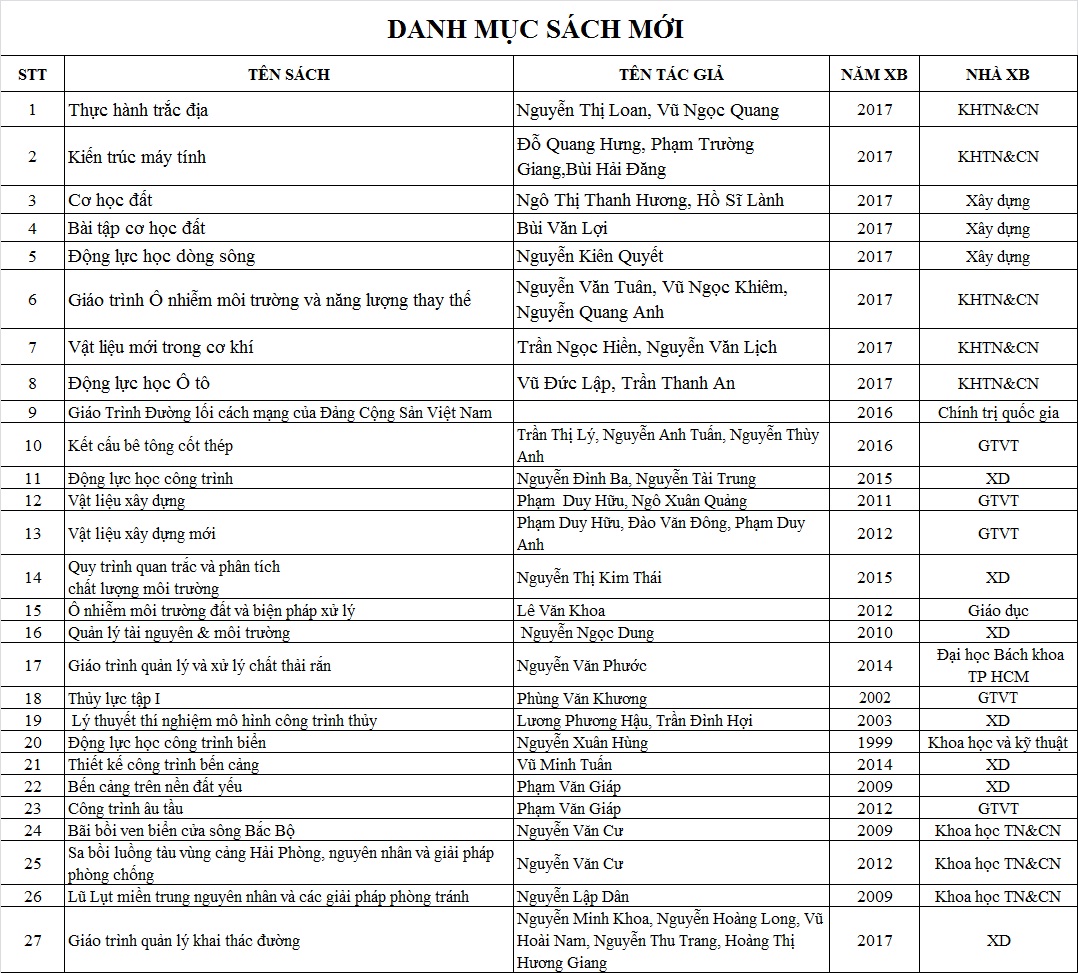 DANH MỤC SÁCH GIÁO TRÌNH TRÊN THƯ VIỆN