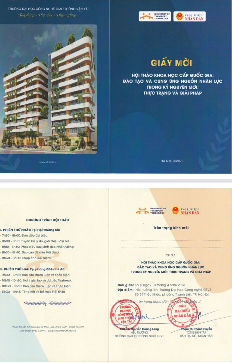 Khoa Luật – Chính trị, Trường Đại học Công nghệ Giao thông Vận tải trân trọng thông báo về việc: Tổ chức Hội thảo khoa học cấp quốc gia với chủ đề: