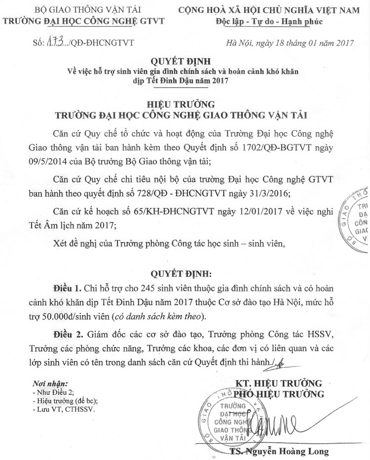 Thời gian nhận chi hỗ trợ vào thứ 3, thứ 5 hàng tuần tại Phòng Tài chính - Kế toán (Phòng 211 - Nhà H1, Cơ sở Đào tạo Hà Nội).
