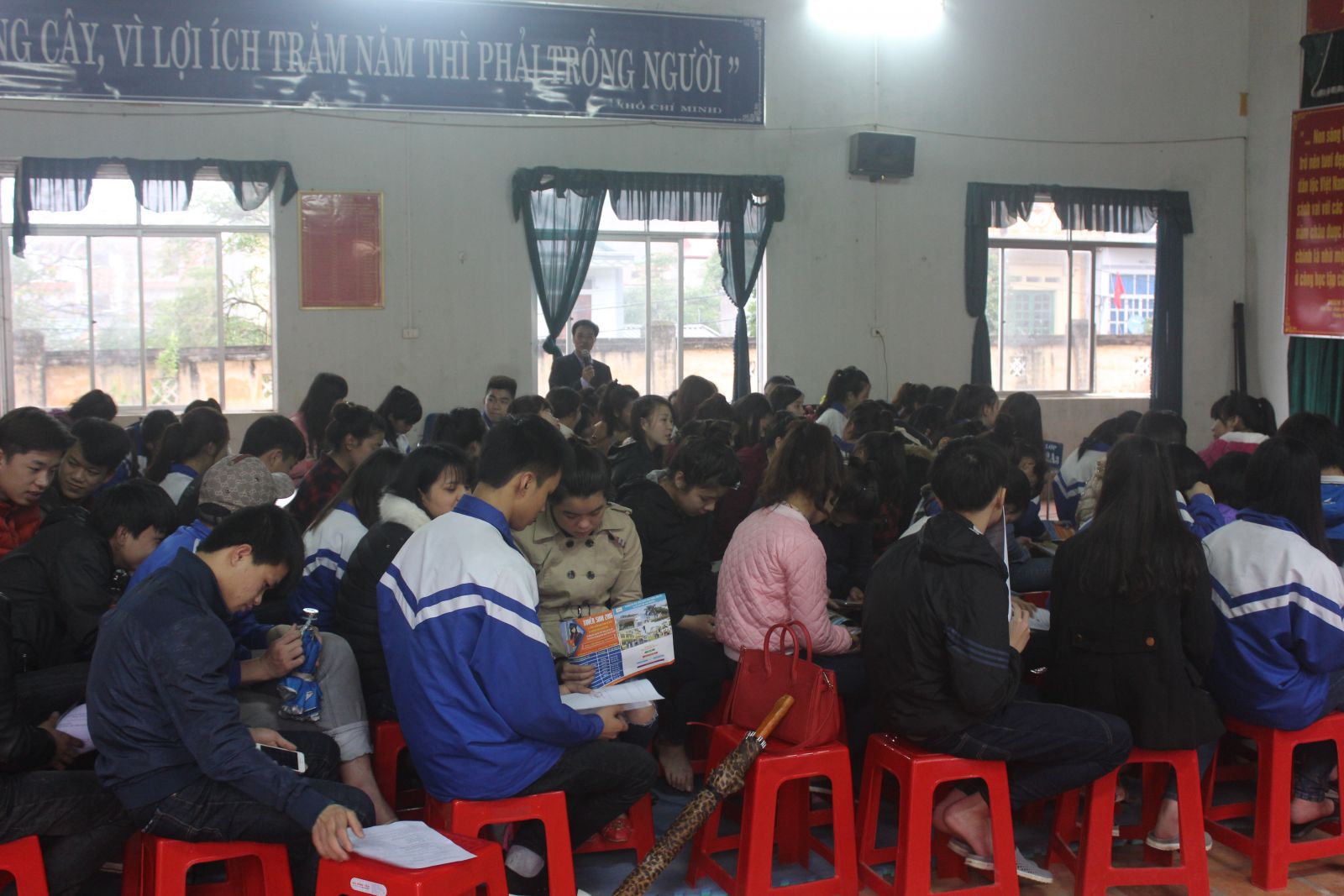 Đoàn đã gặp gỡ các em học sinh lớp 12 để giới thiệu về các ngành nghề đào tạo của Trường, cung cấp thông tin tuyển sinh cho các em học sinh, đồng thời giải đáp những thắc mắc về cơi hội việc làm cũng như vị trí việc làm của các em sau khi ra trường. Trong buổi gặp gỡ Đoàn đã trao 23 suất học bổng cho những học sinh nghèo vượt khó đạt thành tích cao trong học tập.