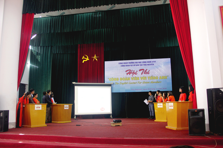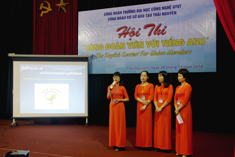 Thực hiện Chương trình công tác công đoàn năm 2018 của Công đoàn Trường Đại học Công nghệ GTVT và Kế hoạch hoạt động quý IV- 2018 của Công đoàn Cơ sở đào tạo Thái Nguyên; đồng thời, để thiết thực chào mừng ngày kỉ niệm 36 năm Nhà giáo Việt Nam 20/11, 73 năm thành lập Trường và 57 năm ngày Bác Hồ về thăm Trường, được sự nhất trí của Đảng ủy, Ban giám đốc, Công đoàn Cơ sở đào tạo Thái Nguyên tổ chức Hội thi “Công đoàn viên với tiếng Anh” dành cho CB – VC – NLĐ của Cơ sở. Đây cũng là hoạt động nhằm biểu dương những cá nhân tiêu biểu cũng như phát huy phong trào học ngoại ngữ, từ đó góp phần nâng cao trình độ ngoại ngữ trong đội ngũ cán bộ, giảng viên, người lao động của Cơ sở đào tạo Thái Nguyên.